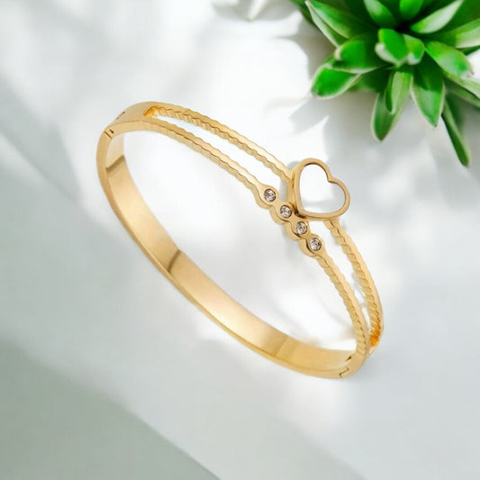 This Gold Plated Enamel Heart and Zirconia Bangle