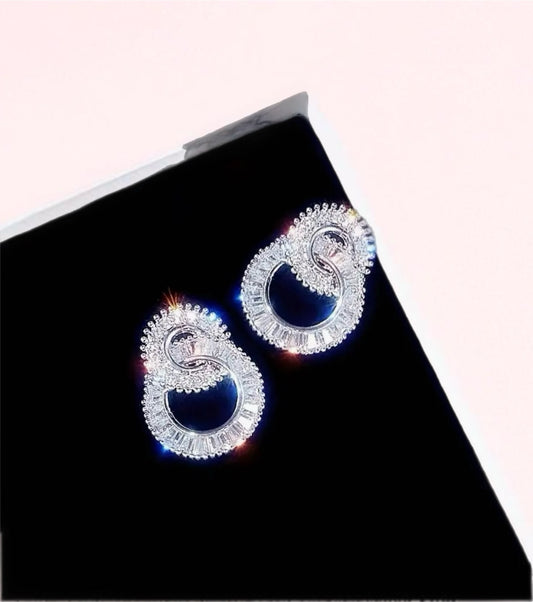 Sterling Silver Zirconia Stud Earring Overlapping Circle