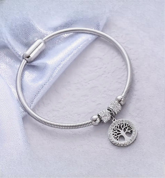 Titanium Steel Tree of Life Charm Bangle Bracelet