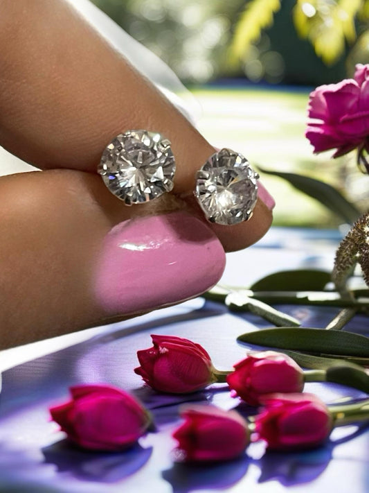 Sterling Silver Stud Earrings with Lab Zircon Stones
