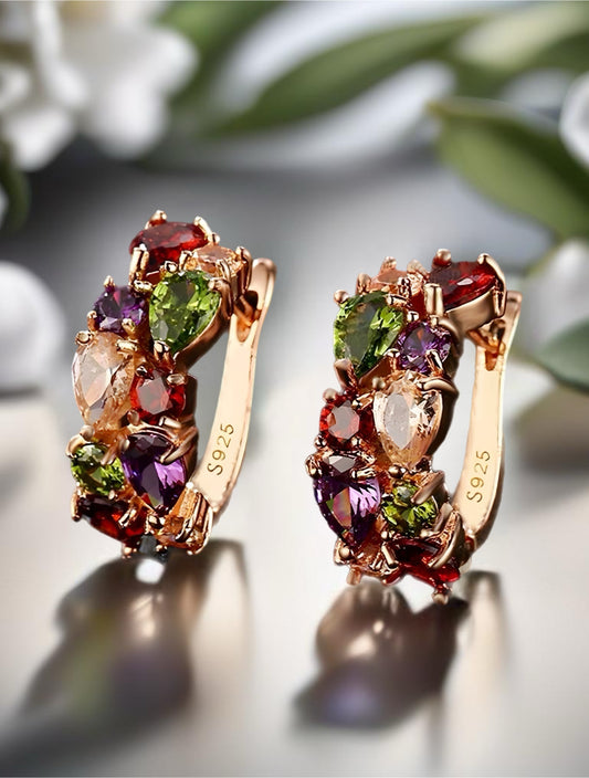 18k Gold Plated Flower Earring Multi-Stone