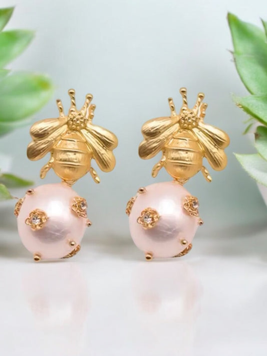 Bubble Bee Faux Pearls Earrings with 18k Details