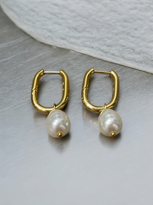 18k Gold Plated Fresh Pearls Hoop Round Earrings