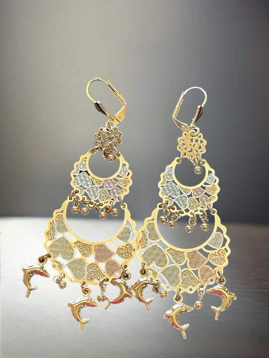 Genuine Solid 14k - Hoop Earring with Yellow, White and Rose Gold Balls