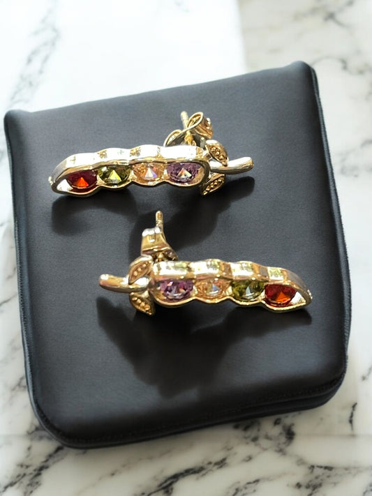Gold-Filled A Leaf Earrings with Multi-Color Stones