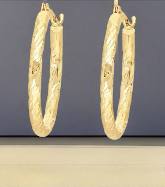 Genuine Solid 14k Gold Texturized Hoop Earrings