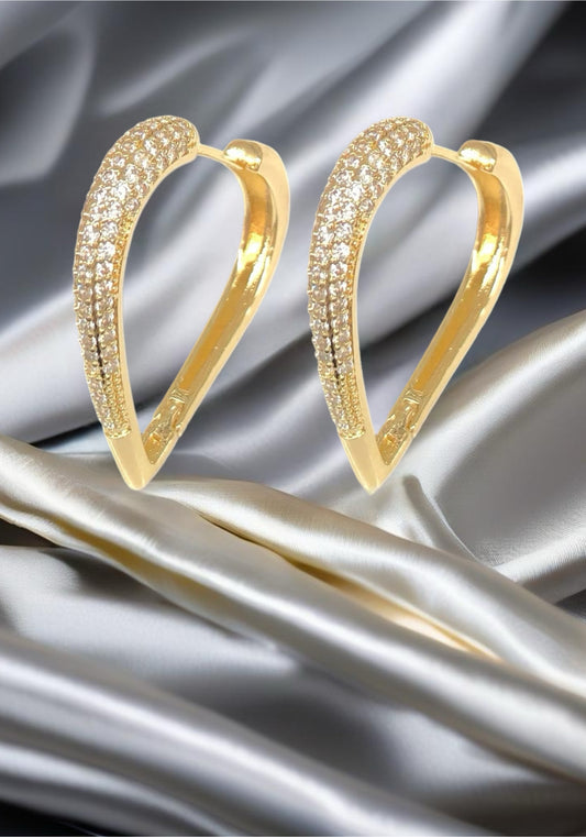 18K Gold Filled Cubic Zirconia Hoop Heart Earrings
