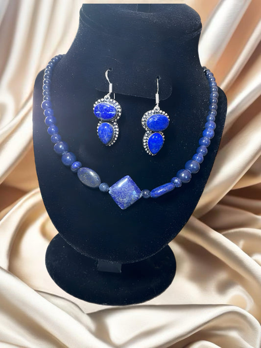 Lapis Lazuli Stone Fashion Necklace and Earring Set