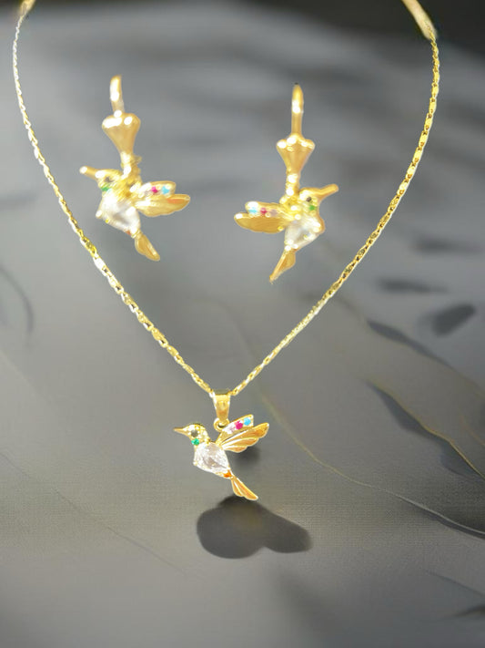 18K Gold Filled Hummingbird Necklace and Earring Set