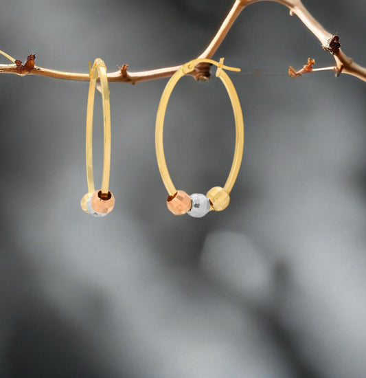 Genuine 14K Gold Multi-Color Bead Hoop Earrings