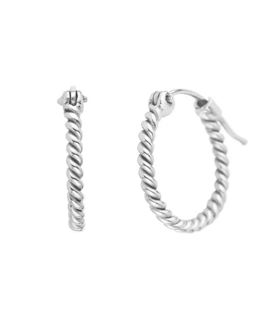 Genuine Solid White 14K Gold Twisted Hoop Earring