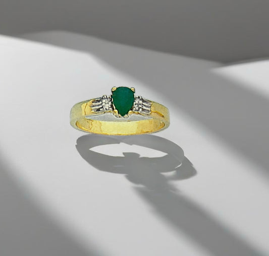 Solid 14K Yellow and White Gold with Emerald and Diamond Ring