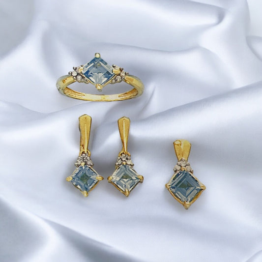 Solid 14K Gold Aquamarine Earring, Pendant, and Ring Set