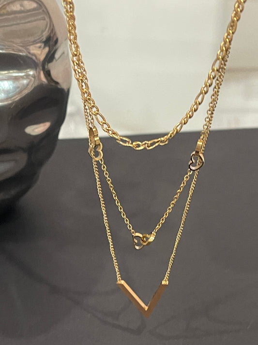 Fashion Stainless Steel Three Layers Necklace with “V” pendant