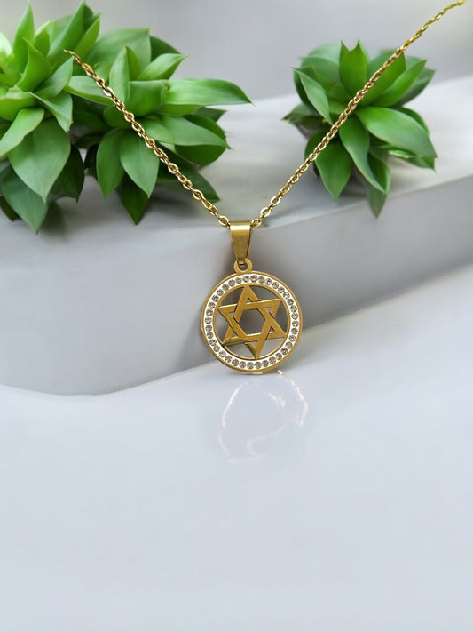 Elegant Stanley Steel and Zirconia Start of David Necklace