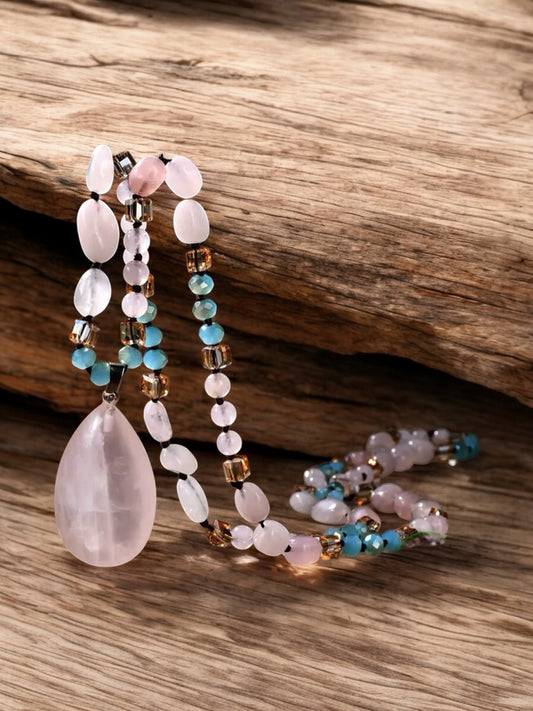Serene Harmony Necklace – Rose Quartz & Tranquil Blue Elegance
