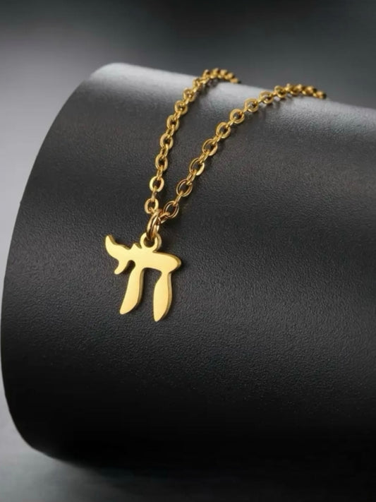 • "Gold Stainless Steel Hebrew Chet Necklace – Symbol of Life