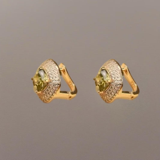 18K Gold Plated with Light Olive Green Synthetic Stone Necklace and Earring Set