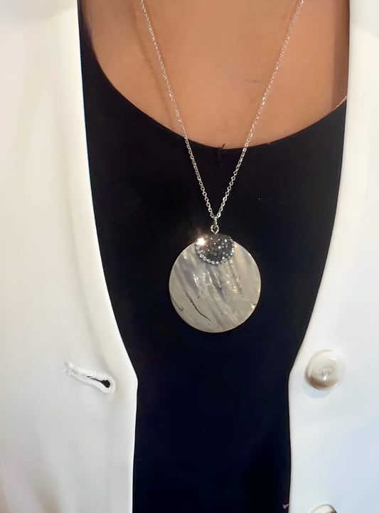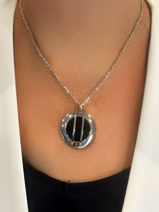Silver Plated Stainless Steel Circle Pendant Necklace