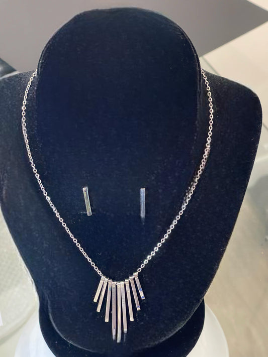 Fashion Stainless Steel Pendant “V” Necklace and Earring Set