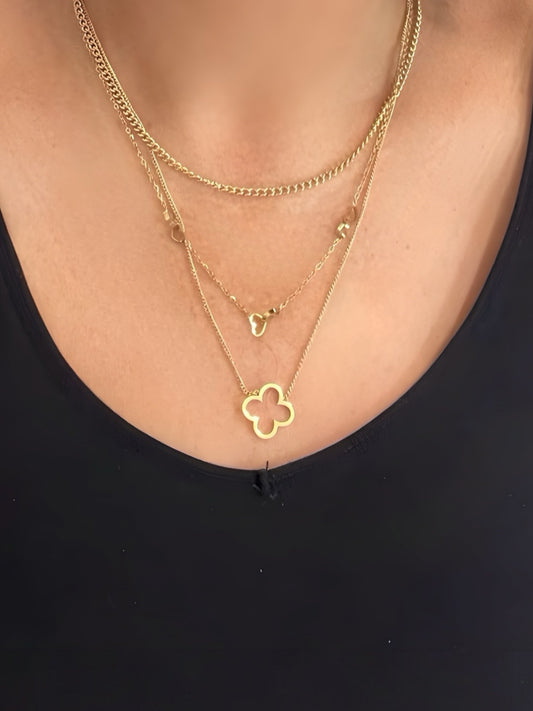 Fashion Stainless Steel Gold Plated Three Layers Chain Clover Necklace Set