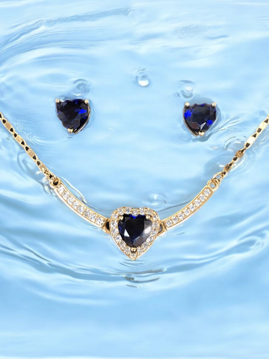 18k Gold Filled Blue Zirconia Necklace and Earrings