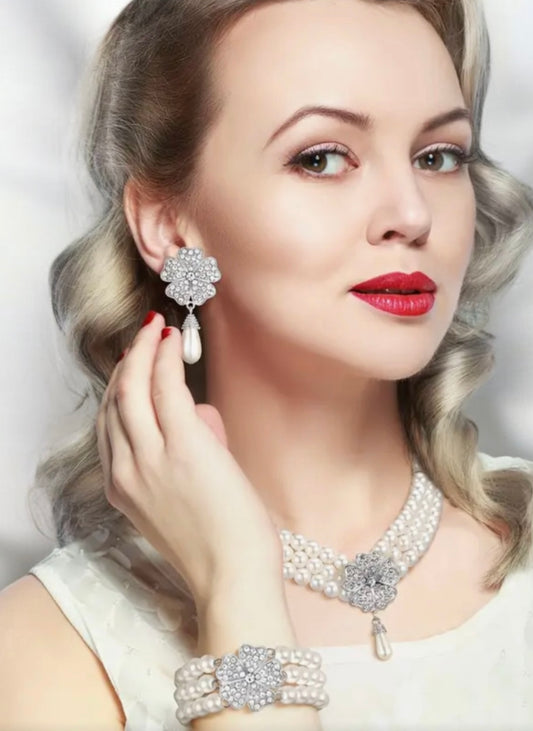 Fashion Faux Pearls Necklace, Bracelet and Earring Set