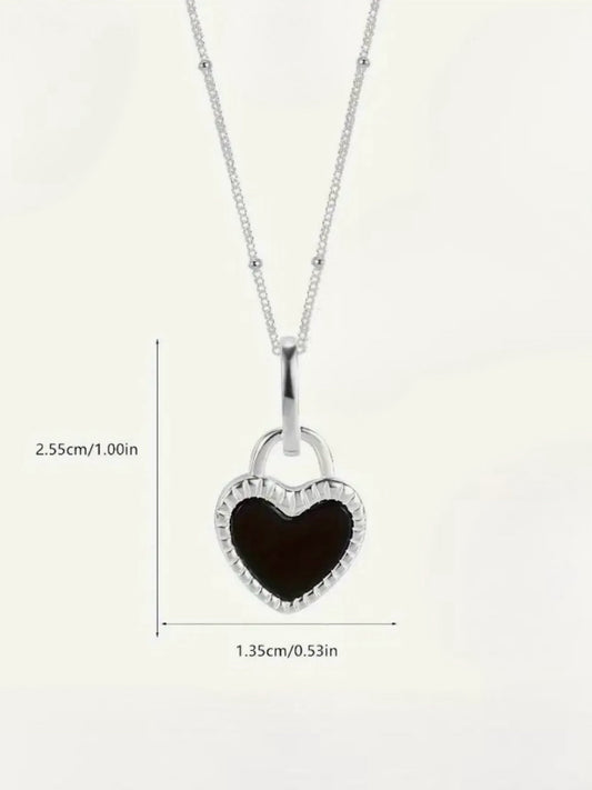 925 Sterling Silver Black Agate Shell Heart Necklace