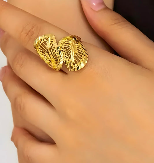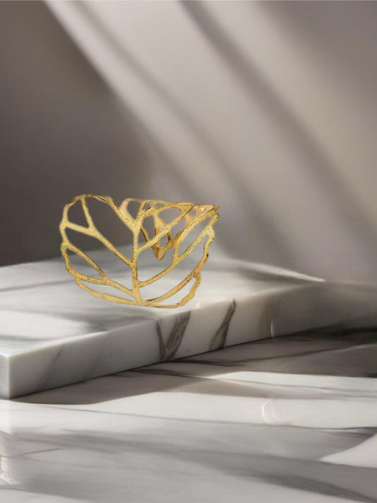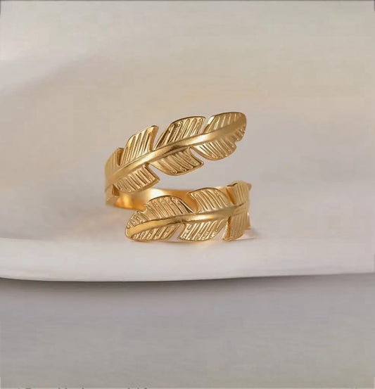 Fashion Stainless Steel Gold Plated Modern Leaf Ring