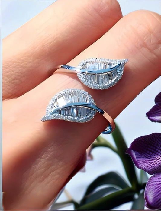 Silver Plated Cubic Zirconia Double Leaf Ring