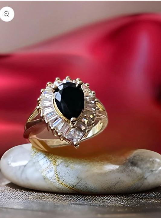 18K Gold Filled Ring with Lab Sapphire and Zircon