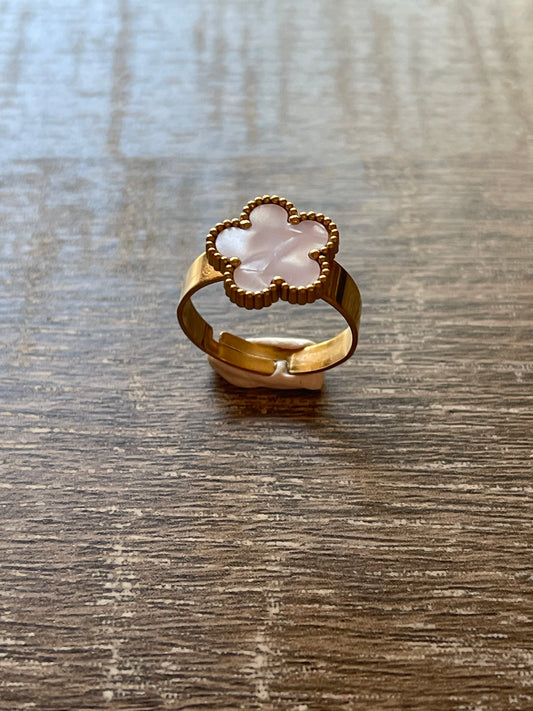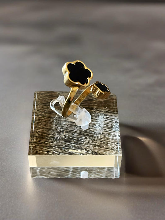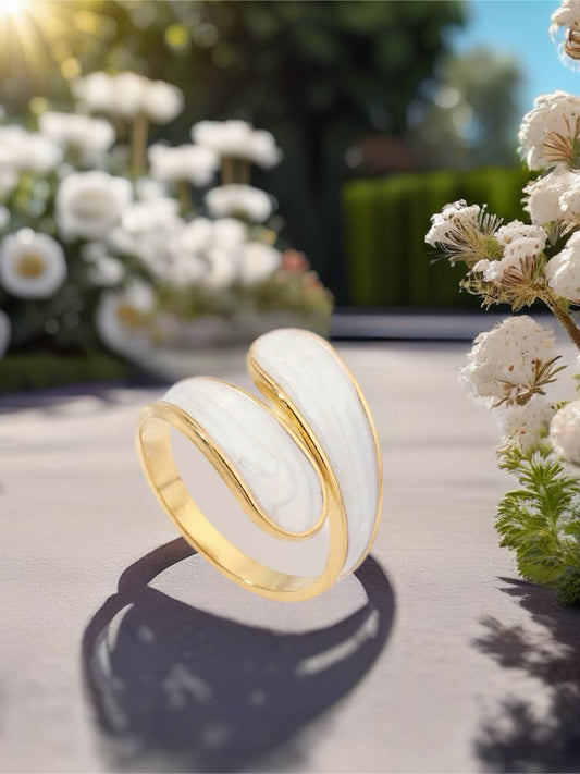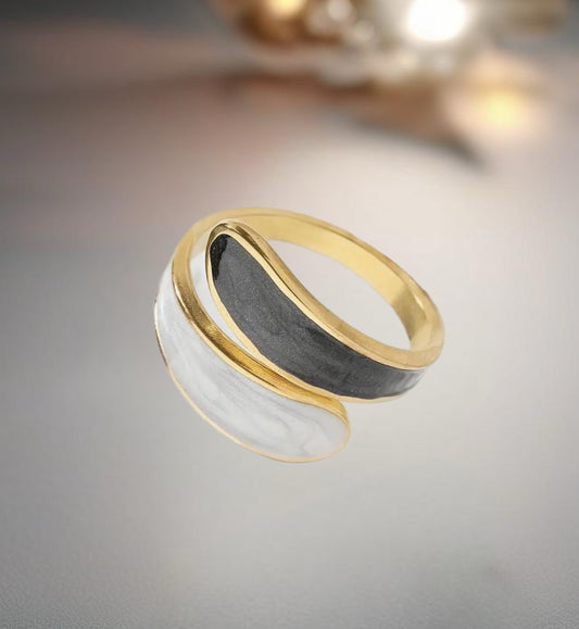 Fashion Stainless Steel Gold Plated Enamel Back and White Open Ring