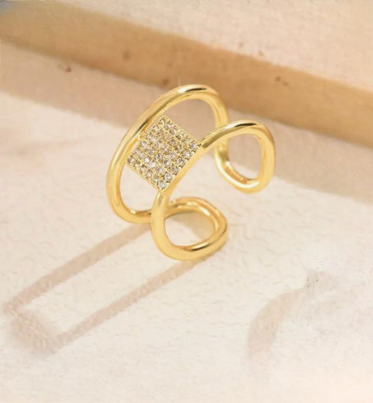 Fashionable Golden Cubic Zirconia Square And Round Geometric Ring